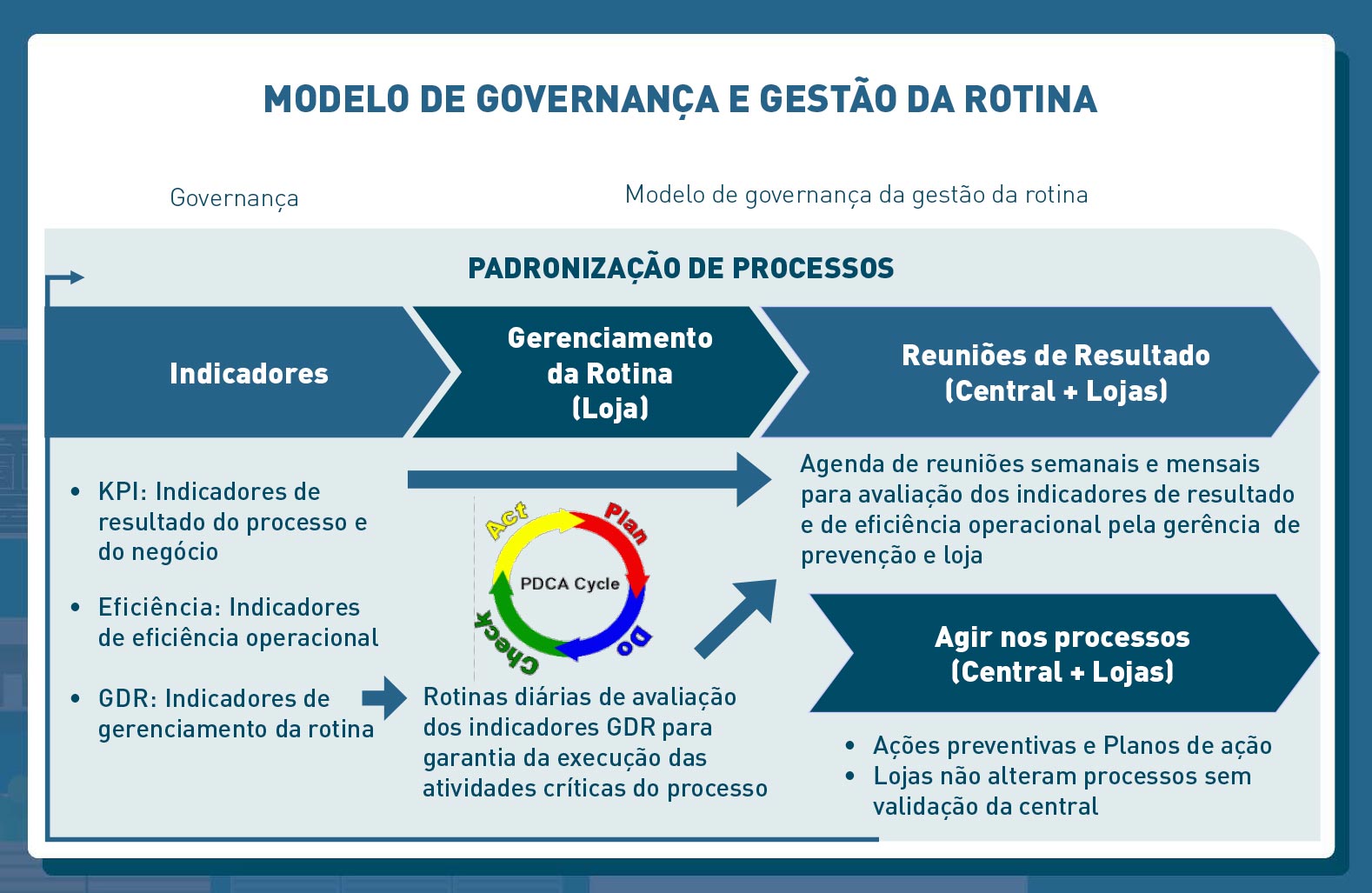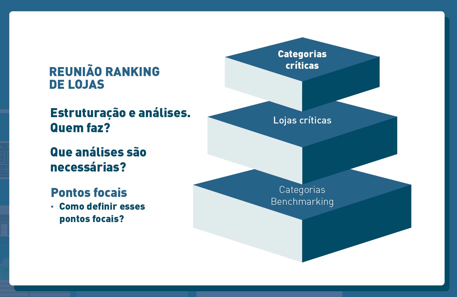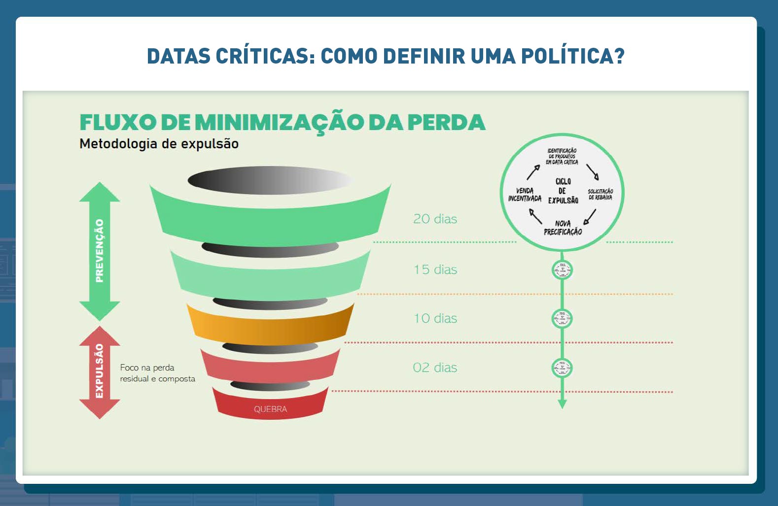 Com base em premissas claras, definimos critérios para elaboração de inventários rotativos e inventários gerais. Estabelecemos peso para cada grupo/categoria de produtos em função da sua importância e impacto no total das quebras.